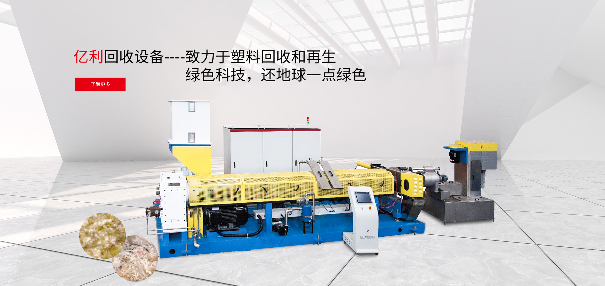 我們的主要產(chǎn)品包括:塑料擠出機(jī)械例如PE / PPR管材擠出生產(chǎn)線等;塑料混合機(jī)械例如PVC混合機(jī)和自動上料系統(tǒng)等,塑料回收機(jī)械例如PE / PP廢塑料清洗生產(chǎn)線,PE / PP回收造粒生產(chǎn)線等。